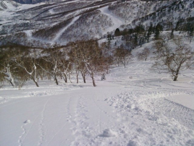 日曜日の田代6ロマを使ったコースではパウダーフリーク達が滑りまくりみるみるうちに不整地パウダー??になりましたが