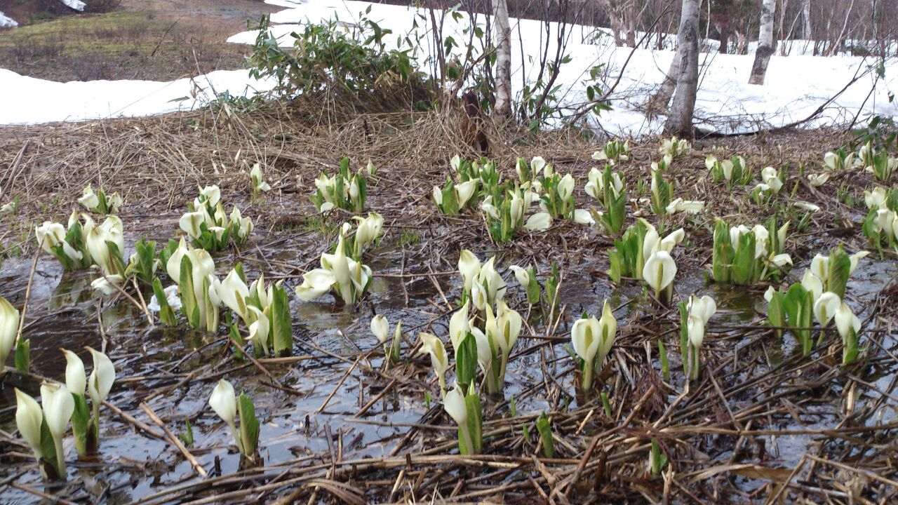 苗場散策 投稿日時: 2015年4月19日 投稿者: 村木 治 昼前から雨が降りましたが晴れでブレーキのかかる雪よりは良い。 とのことで夕方まで色々なコースを滑り回すレッスンになりました。 田代ステーションに降りてきたら 帰りは道が片側通行らしく渋滞してたら嫌だなと苗場散策(^^) ドラゴンドラ駅のそばに水芭蕉がたくさん咲いていました☆ 水芭蕉キレイだなと思いなが苗場もまだ滑れそう!と気になるばかりでした(^^)
