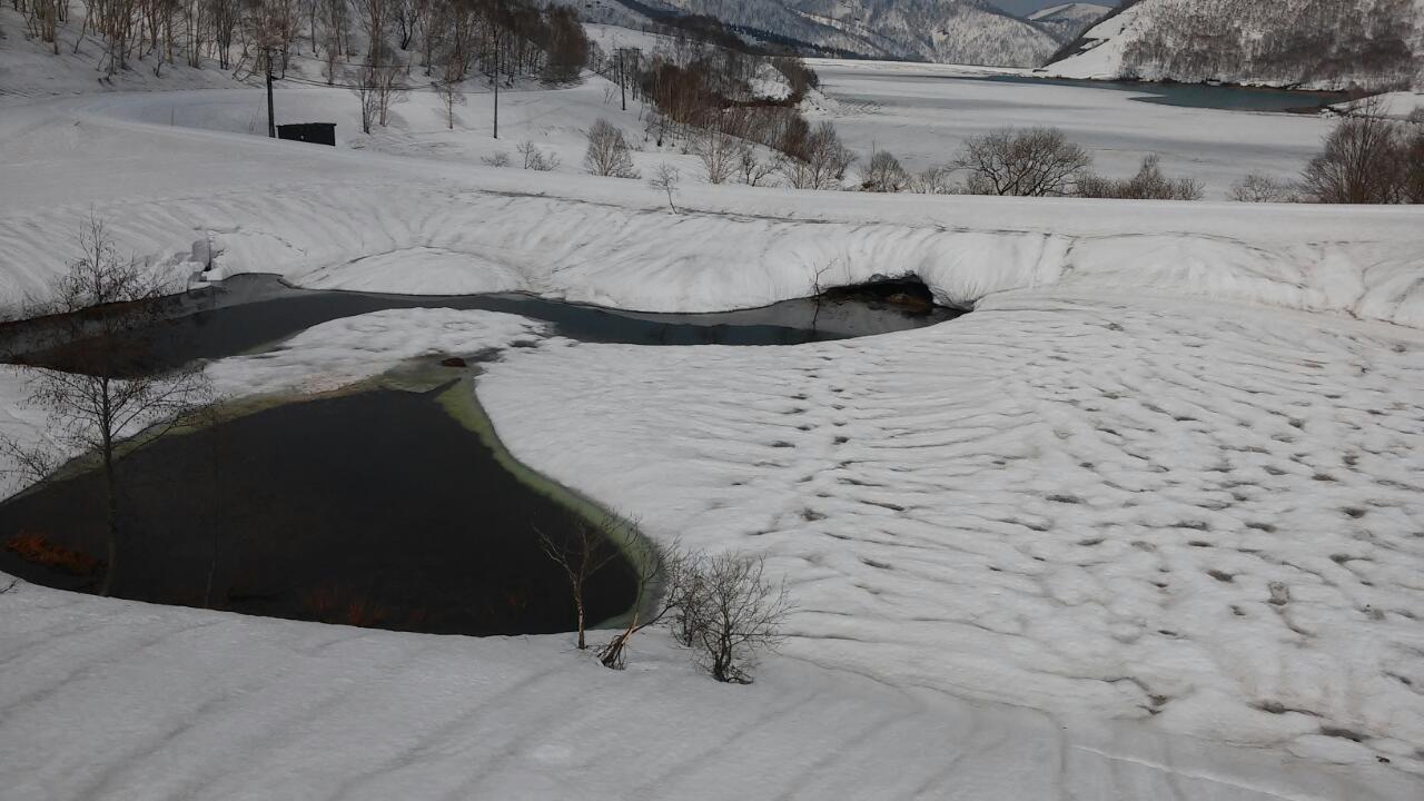 雪降りました!! 投稿日時: 2017年4月29日 投稿者: 村木 治 今日の田代エリア 雨予報だったからなのか空いていました♪ 4月ももう終わるのに湖にはまだ雪??氷??が残っています! 湖の端っこはこんな感じで崩れ解けています そして、今日は1日レッスンのお客さん達をお昼休みの時間に誘いだしかぐらに遊びに行ってきました(^^) コブ楽しかったです♪ 写真は昨日のですが今日はもう少し大きい程度! かぐらも空いていた証拠ですね。 午後の雷雨、かぐら山頂付近は雪が降りました~!!