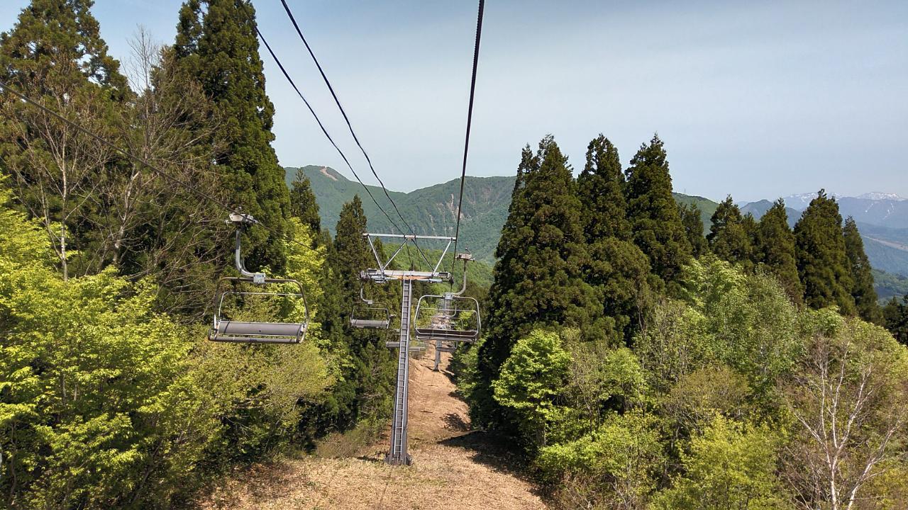 春のこのリフトの下りは景色良く