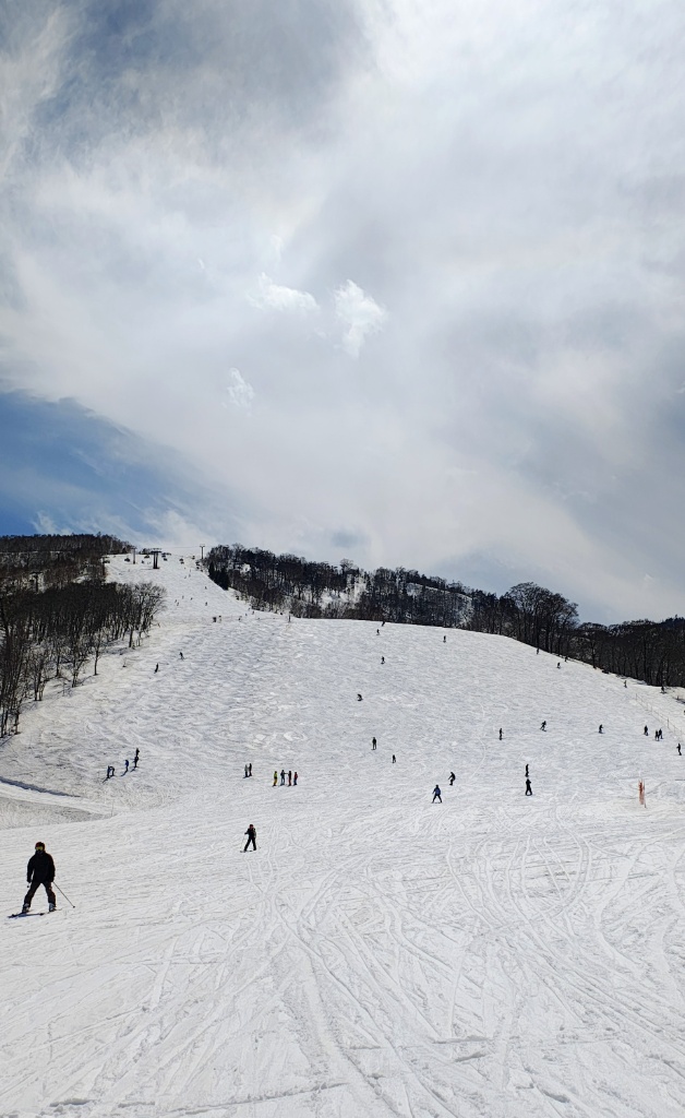 田代ロープウェイから 投稿日時: 2026年4月6日 投稿者: 村木 治 今日は田代ロープウェイ上がりで田代かぐらでレッスンでした。 晴れて景色は良いのですが 緩斜面は雪がペタペタでキツいですね(^_^;)
